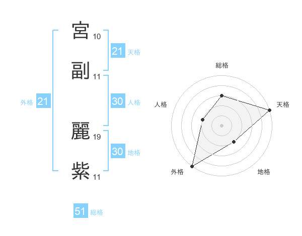 宮副 麗紫さんを姓名の画数から五運を鑑定