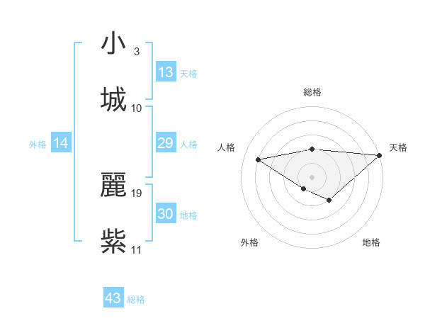 小城 麗紫さんの天格は13画の5点!