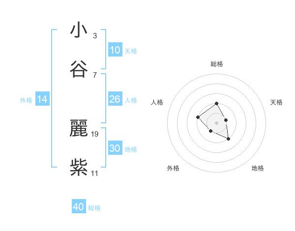 小谷 麗紫さんを姓名の画数から五運を鑑定