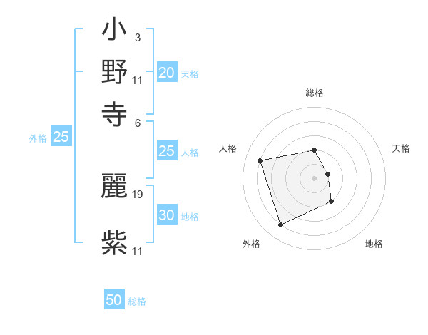 小野寺 麗紫さんの天格は20画の1点!