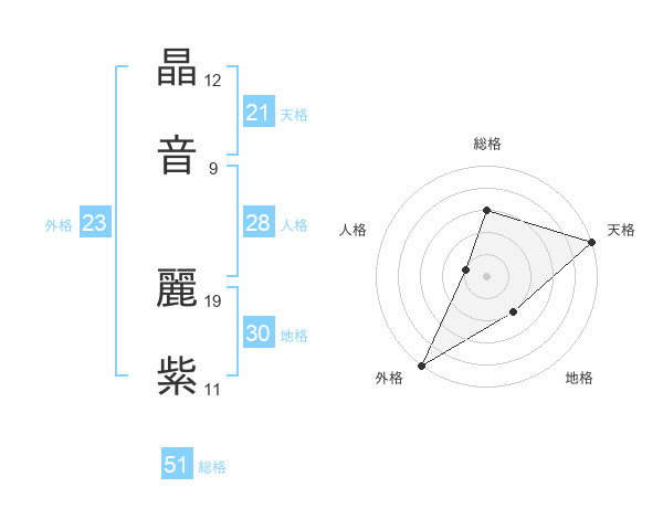 晶音 麗紫さんを姓名の画数から五運を鑑定