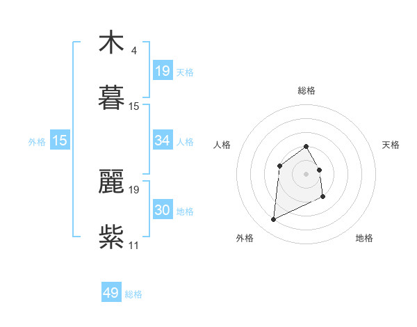 木暮 麗紫さんの外格は15画の4点!