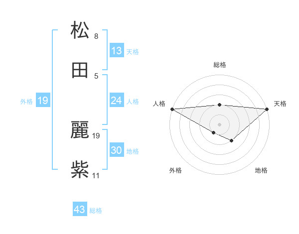 松田 麗紫さんの総格は43画の2点!