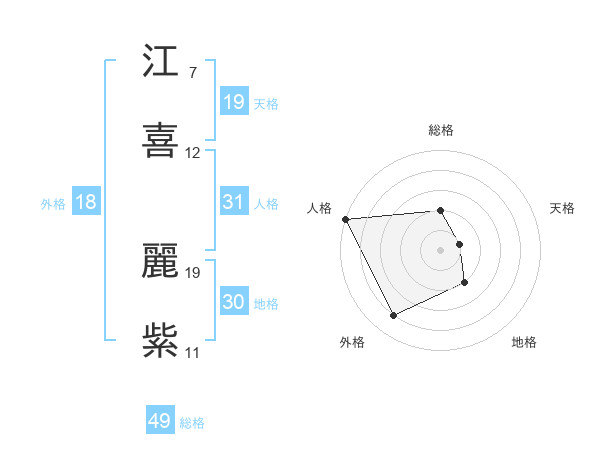 江喜 麗紫さんの総格は49画の2点!