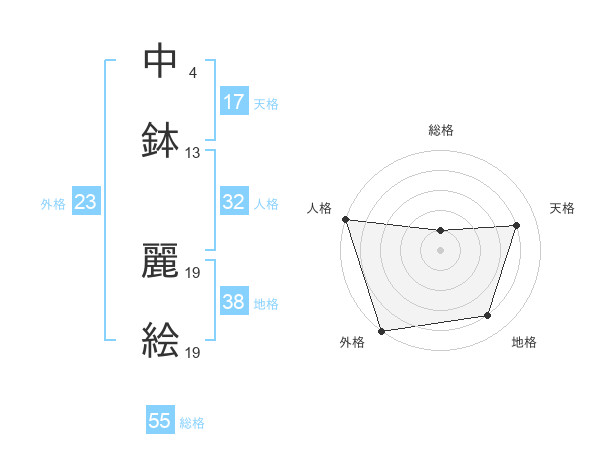 中鉢 麗絵さんを姓名の画数から五運を鑑定