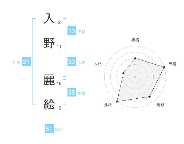 入野 麗絵さんの総格は51画の3点!
