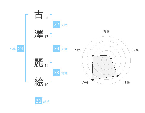 古澤 麗絵さんの外格は24画の5点!