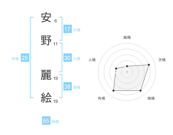 安野 麗絵さんの天格は17画の4点!