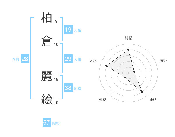 柏倉 麗絵さんの総格は57画の4点!