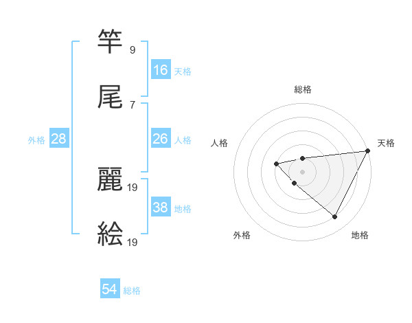 竿尾 麗絵さんの総格は54画の1点!