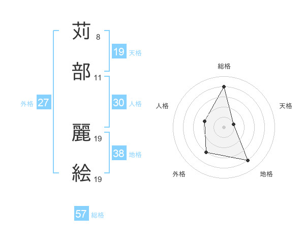 苅部 麗絵さんを姓名の画数から五運を鑑定