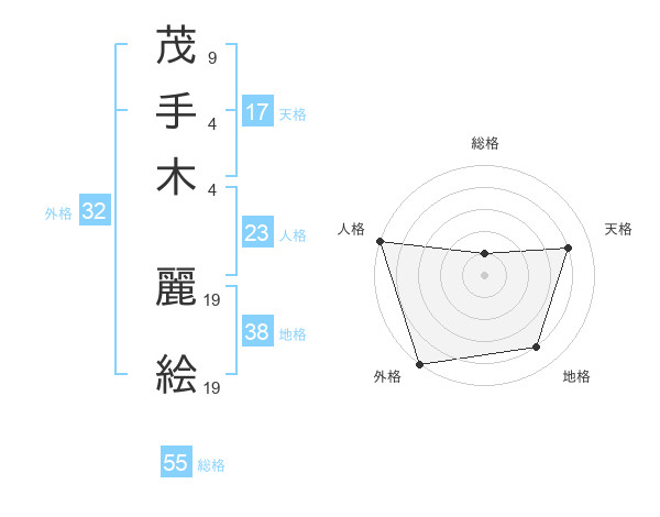 茂手木 麗絵さんの天格は17画の4点