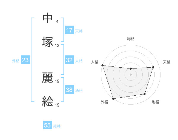 中塚 麗絵さんを姓名の画数から五運を鑑定