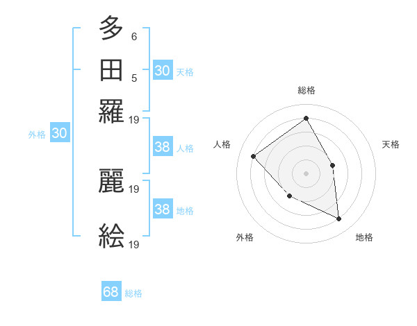 多田羅 麗絵さんの総格は68画の4点!