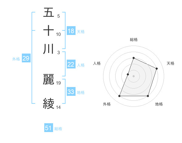 五十川 麗綾さんを姓名の画数から五運を鑑定