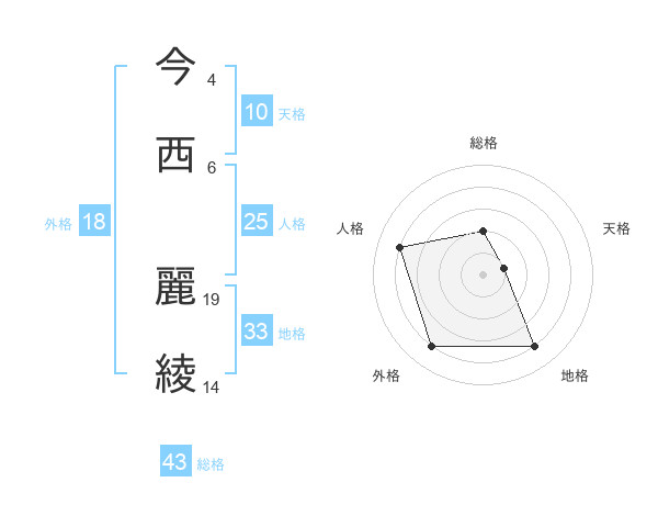 今西 麗綾さんの総格は43画の2点!