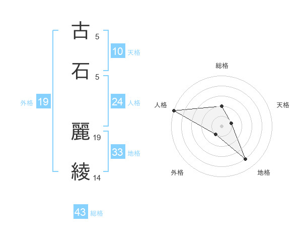 古石 麗綾さんの総格は43画の2点!