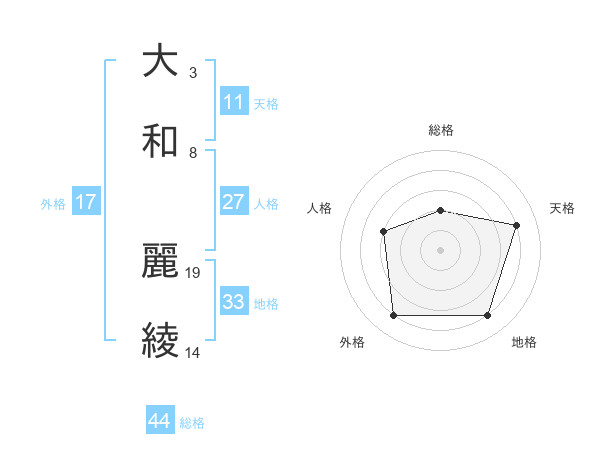 大和 麗綾さんの総格は44画の2点!