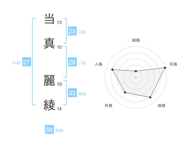 当真 麗綾さんを姓名の画数から五運を鑑定