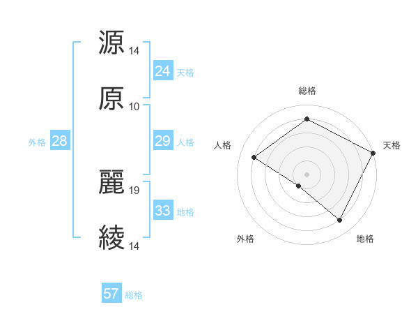源原 麗綾さんの天格は24画の5点!