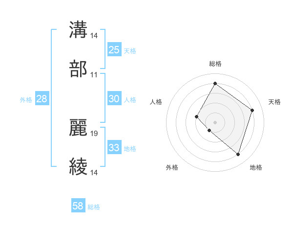 溝部 麗綾さんの総格は58画の4点!