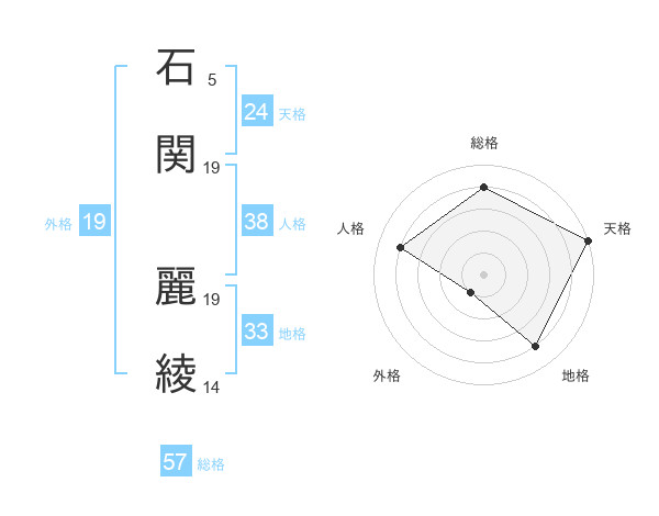 石関 麗綾さんを姓名の画数から五運を鑑定