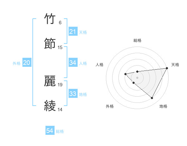 竹節 麗綾さんの総格は54画の1点!