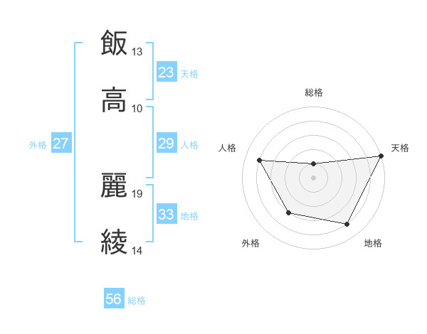 飯高 麗綾さんの天格は23画の5点!