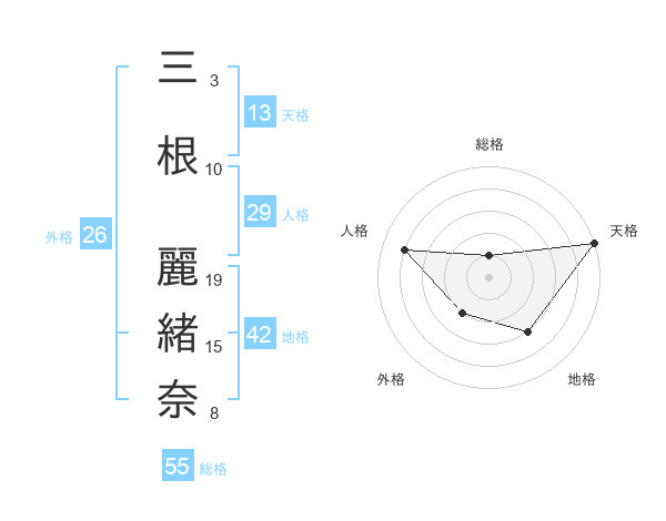 三根 麗緒奈さんを姓名の画数から五運を鑑定