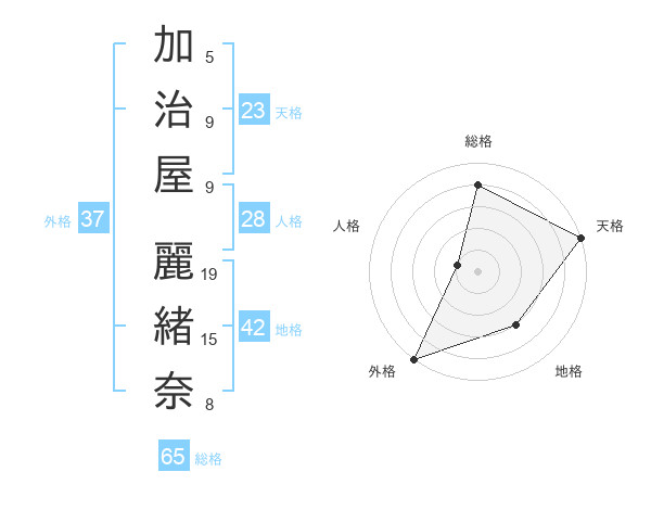 加治屋 麗緒奈さんを姓名の画数から五運を鑑定