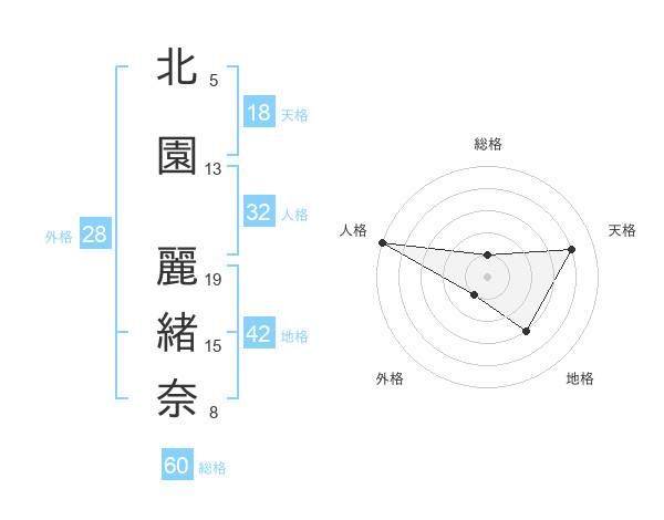 北園 麗緒奈さんを姓名の画数から五運を鑑定
