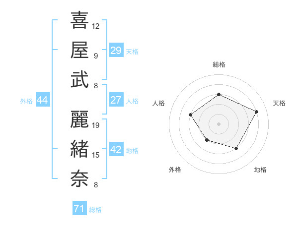 喜屋武 麗緒奈さんの総格は71画の3点!