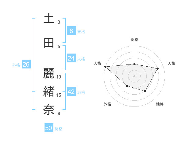 土田 麗緒奈さんを姓名の画数から五運を鑑定