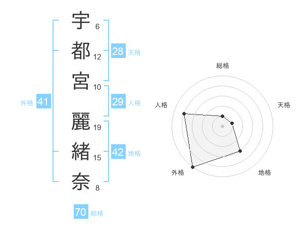 宇都宮 麗緒奈さんの総格は70画の1点!
