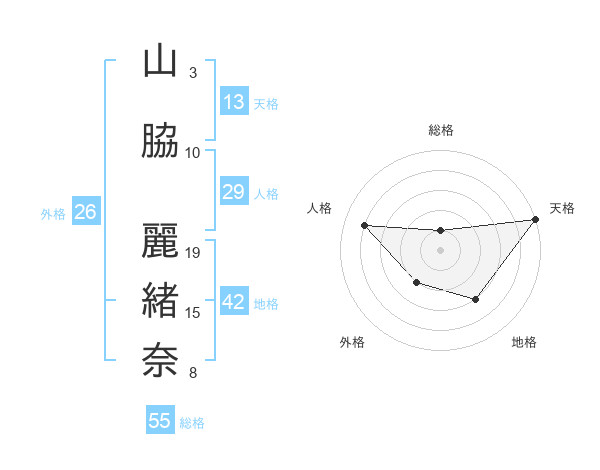 山脇 麗緒奈さんを姓名の画数から五運を鑑定