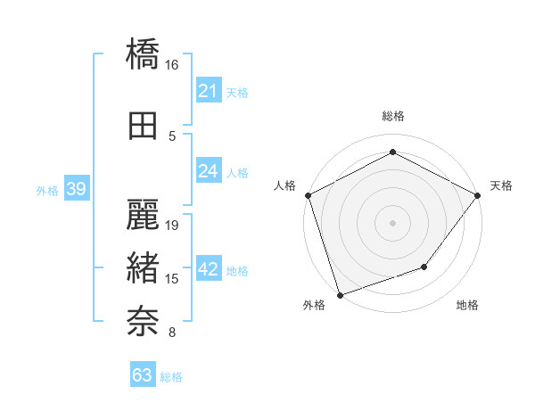 橋田 麗緒奈さんを姓名の画数から五運を鑑定