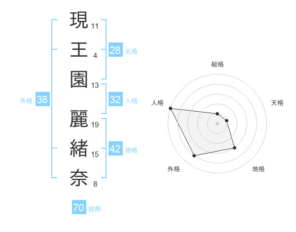 現王園 麗緒奈さんを姓名の画数から五運を鑑定