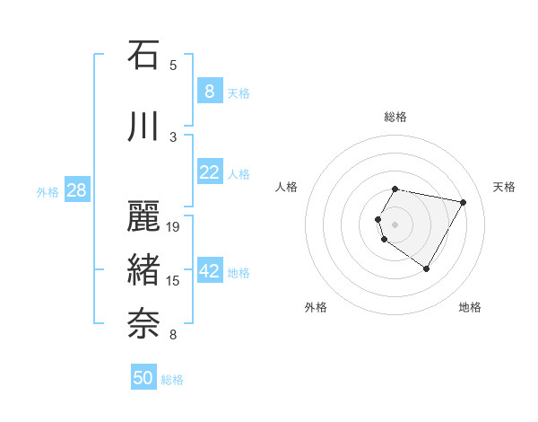 石川 麗緒奈さんの総格は50画の2点!