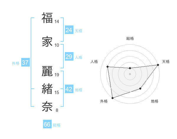 福家 麗緒奈さんの天格は24画の5点!