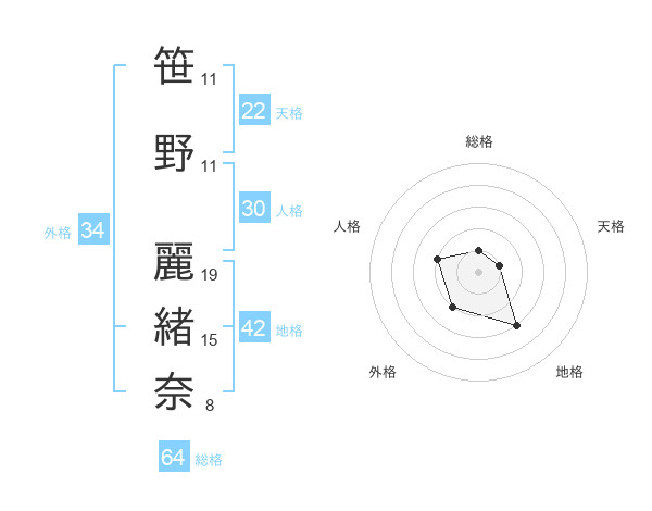 笹野 麗緒奈さんを姓名の画数から五運を鑑定