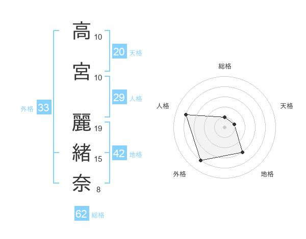 高宮 麗緒奈さんを姓名の画数から五運を鑑定