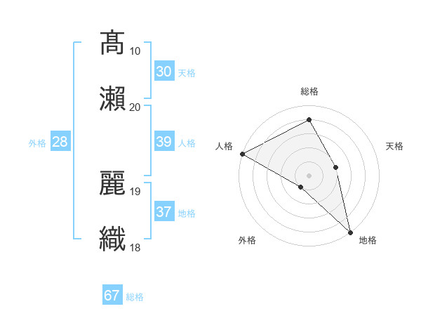 髙瀨 麗織さんを姓名の画数から五運を鑑定