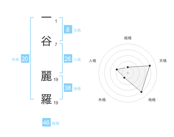 一谷 麗羅さんの外格は20画の1点!