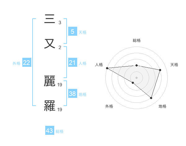 三又 麗羅さんの天格は5画の4点!