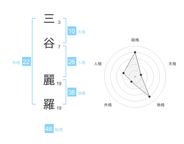 三谷 麗羅さんの総格は48画の4点!