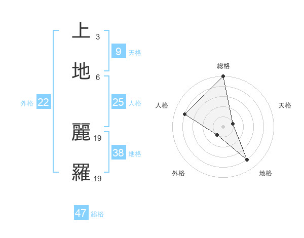 上地 麗羅さんの総格は47画の5点!