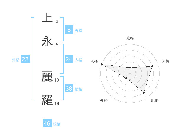 上永 麗羅さんを姓名の画数から五運を鑑定