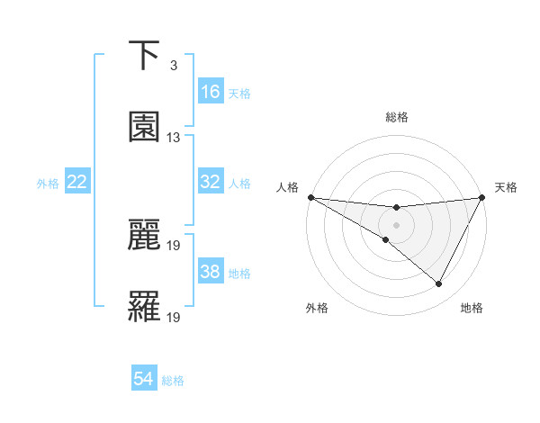 下園 麗羅さんの外格は22画の1点!