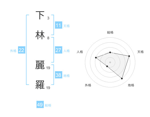 下林 麗羅さんの外格は22画の1点!