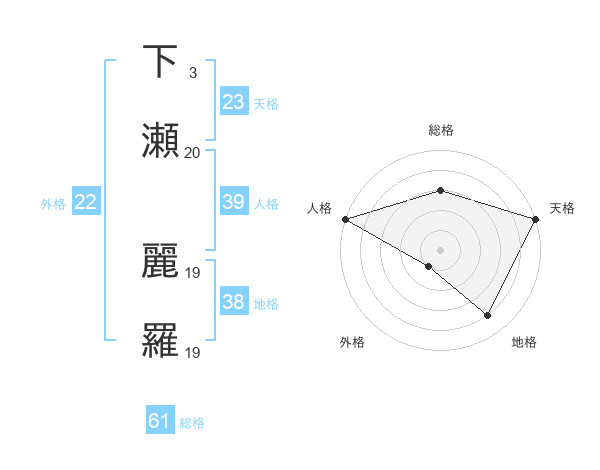 下瀬 麗羅さんの総格は61画の3点!